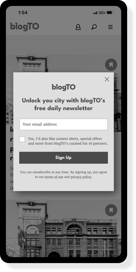 Piloted the email wall on blogTO to test friction, drop-off, and conversion rates in real time.