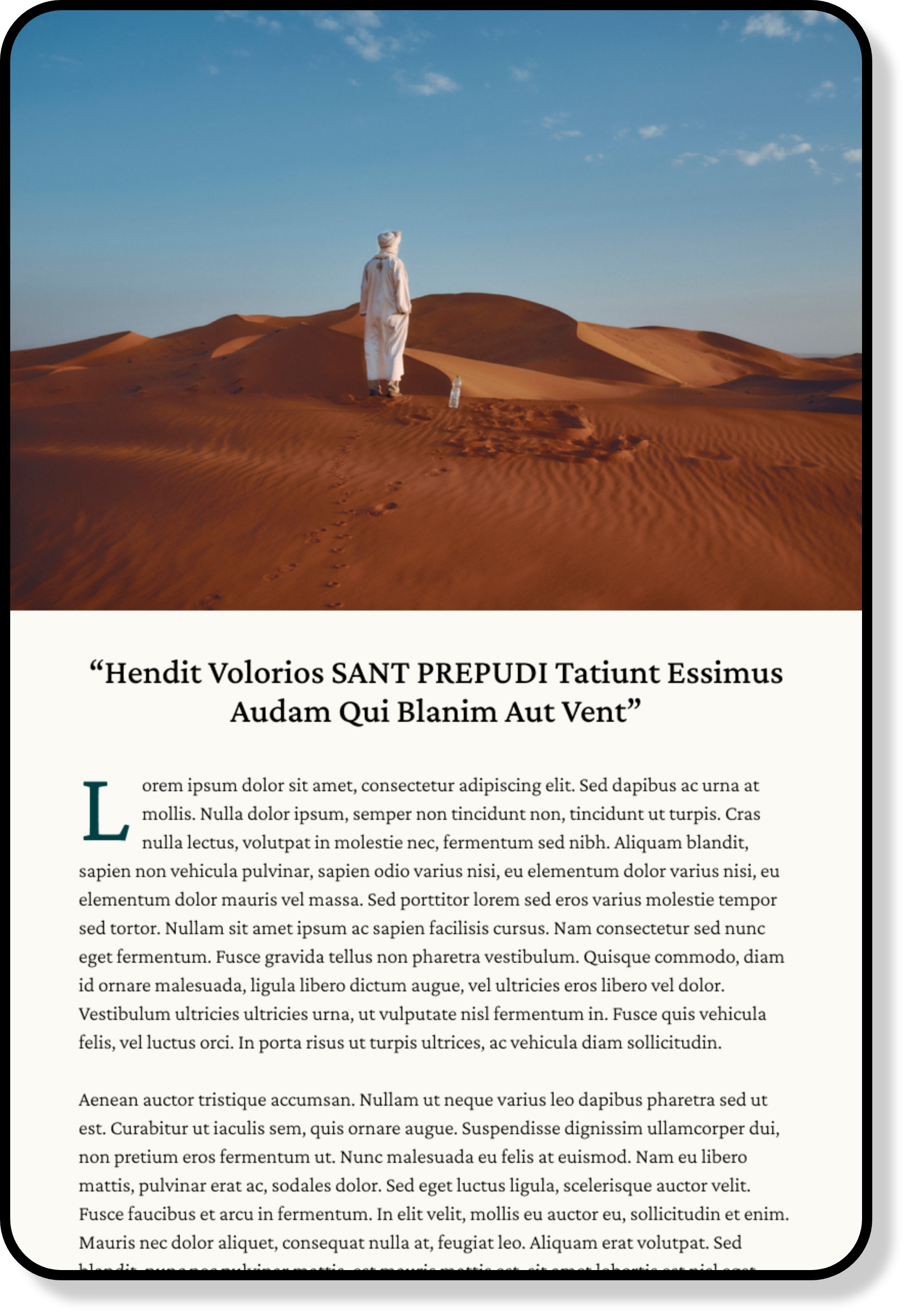 Desktop offers an opportunity for higher-impact design, leveraging upgraded photography and a layout that effectively utilizes negative space.